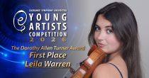 Leila Warren, violin — Leila is a junior at the Douglas Anderson School of the Arts in Jacksonville, Florida. Leila studies with Dr. Shannon Thomas, Associate Professor of Violin at Florida State University. Over the past two years, she has won several Young Artists Competitions sponsored by symphony orchestras, performing in Georgia, Florida, New Jersey, Indiana and Arkansas. Leila performed Violin Concerto in D Major, Moderato Nobile by Erich Wolfgang Korngold . Leila will receive a $1,500 stipend and will be invited to perform with the LaGrange Symphony Orchestra at an upcoming Concert.