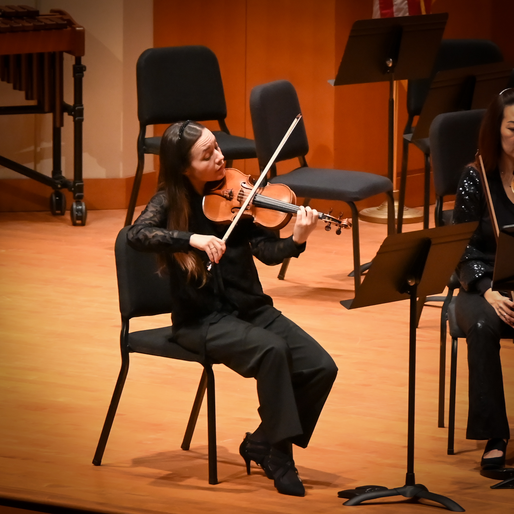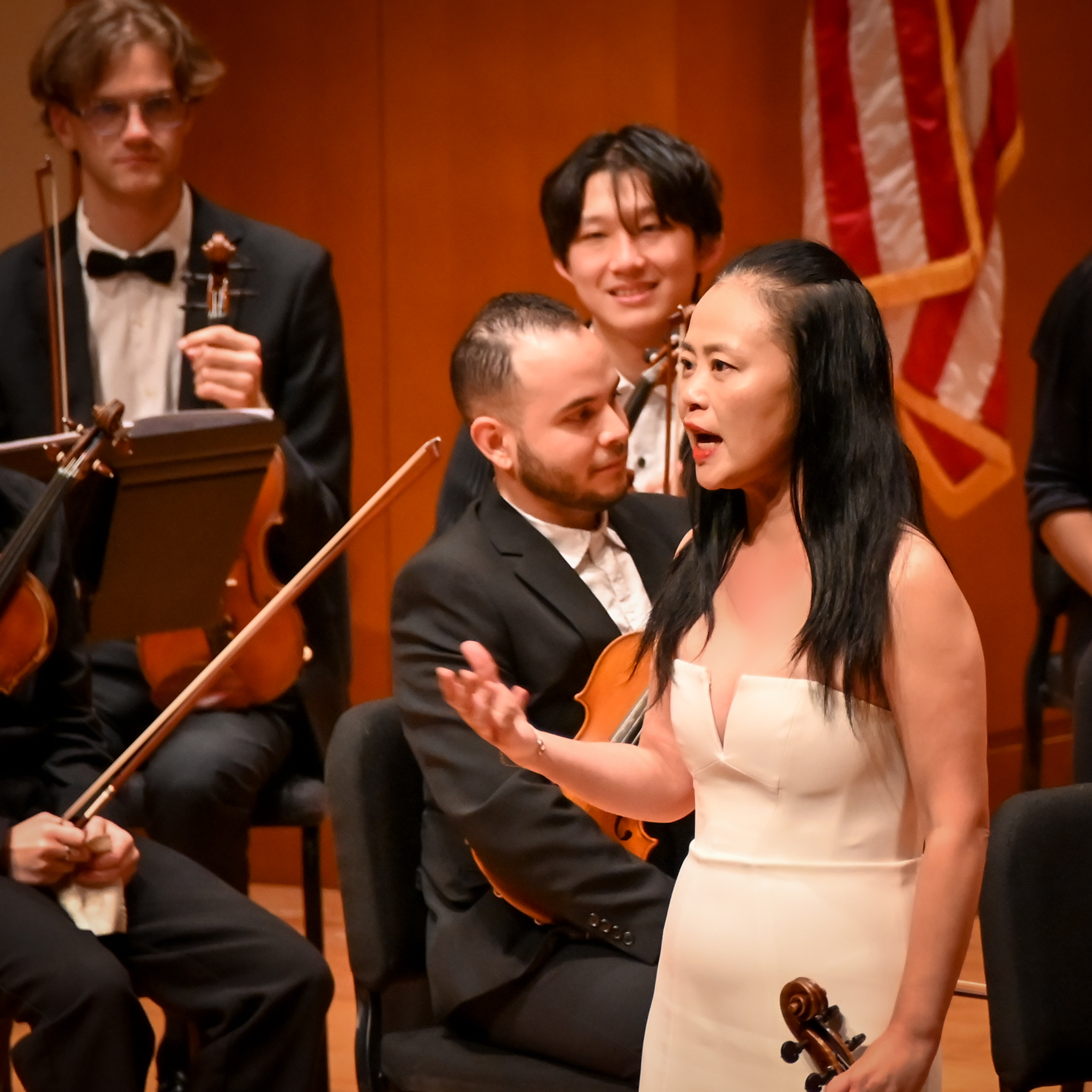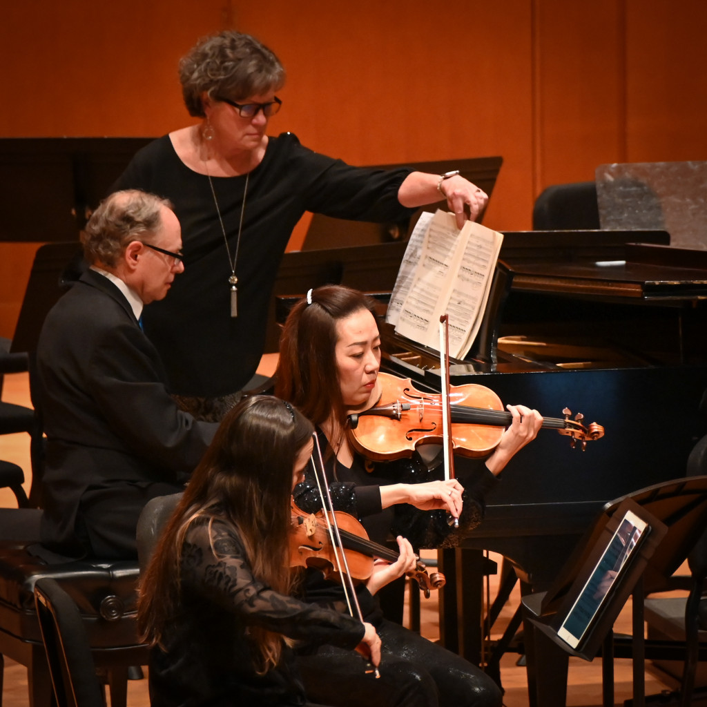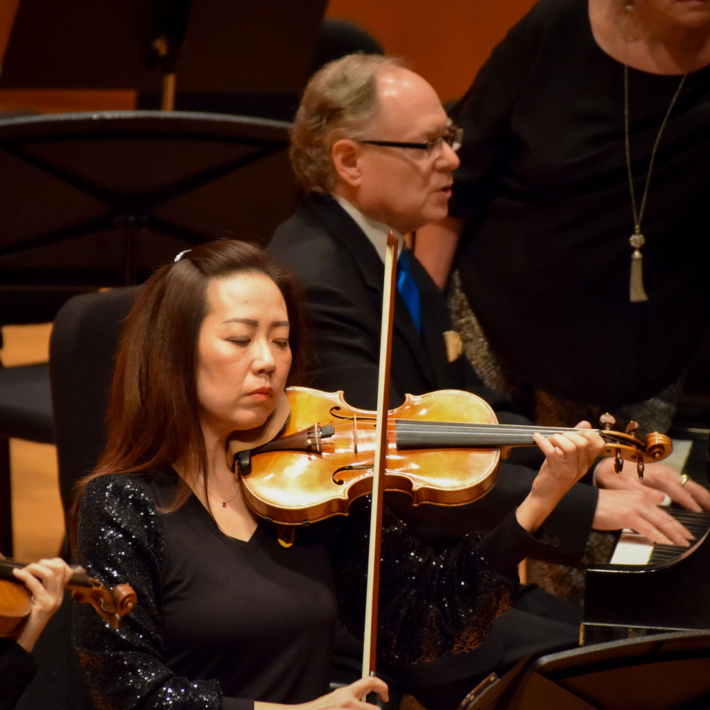 While the audience listened to a message from the maestro, a significant change was made to the orchestra arrangement. The stage then welcomed violist Yinzi Kong, joined once again by the Vega String Quartet and the string sections of the LaGrange Symphony Orchestra, for Herbert Howells’ Elegy for Solo Viola, String Quartet, and String Orchestra.
