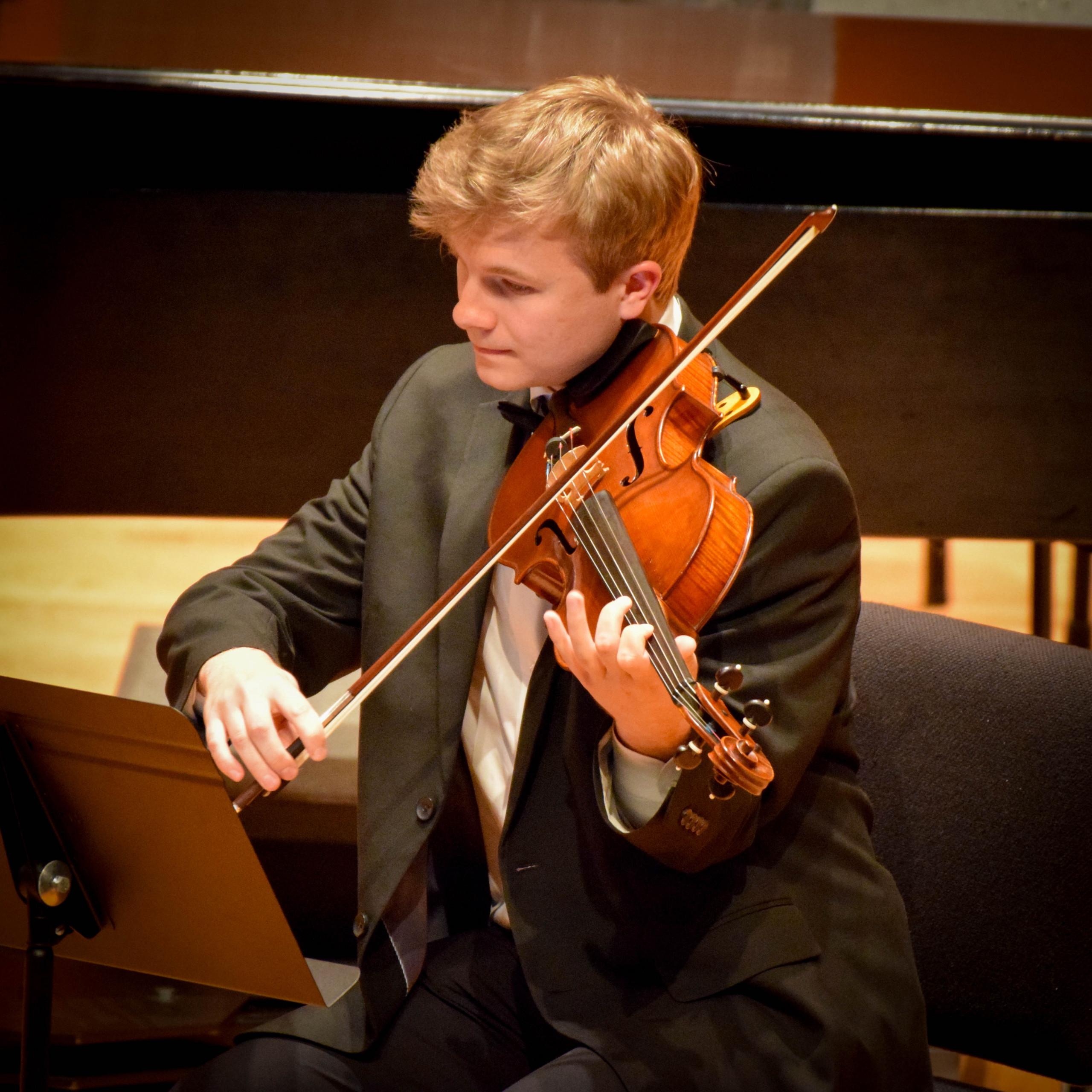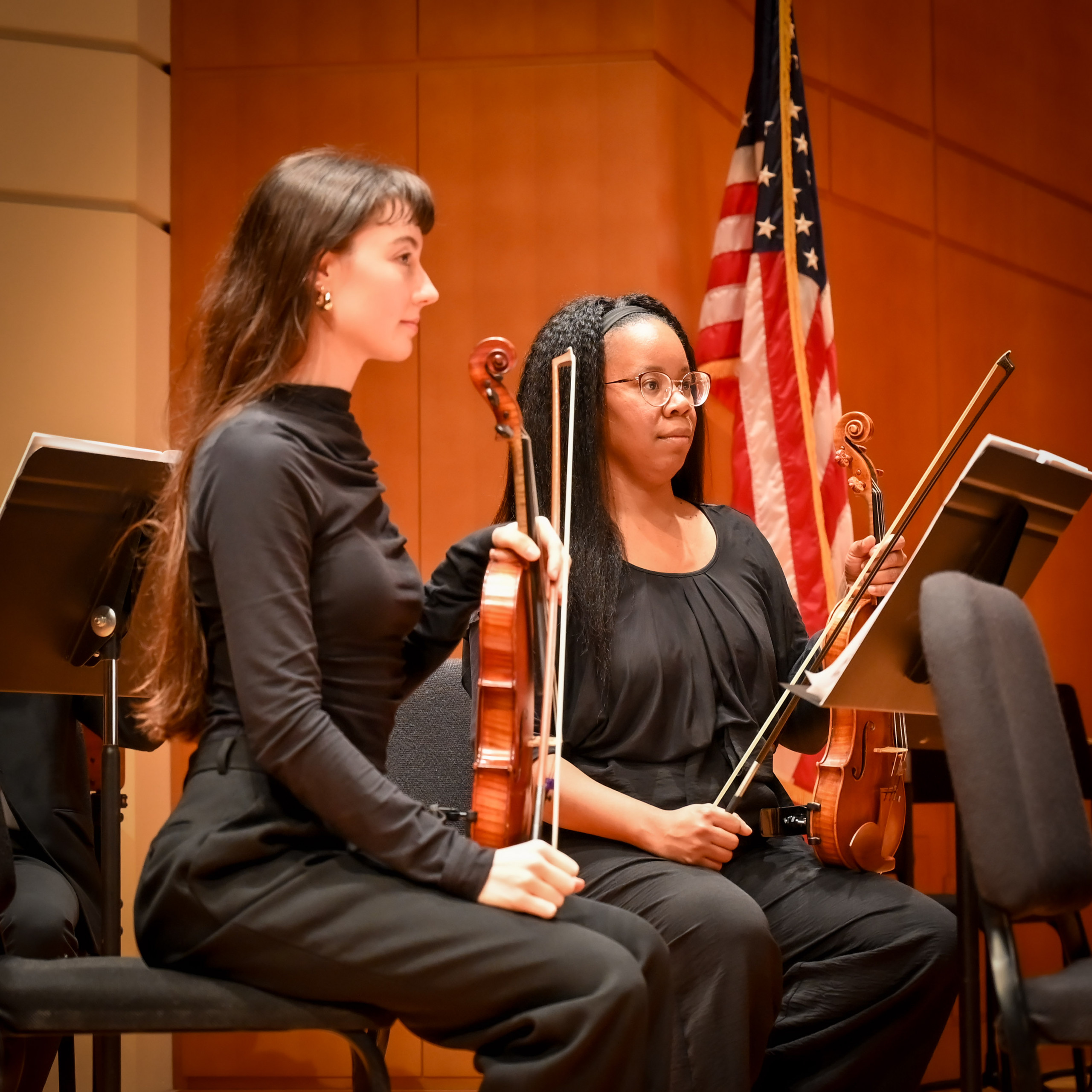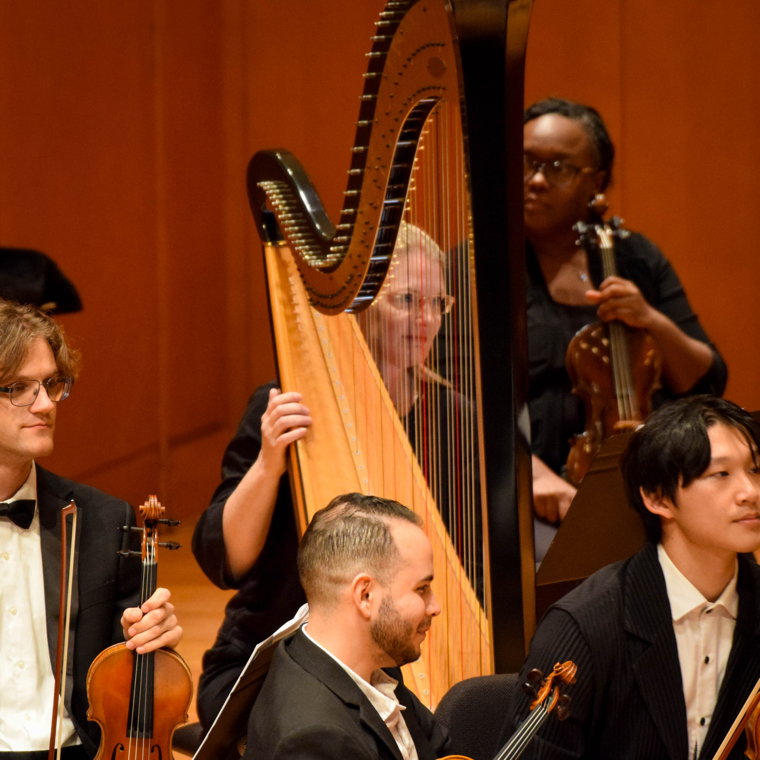 While the audience listened to a message from the maestro, a significant change was made to the orchestra arrangement. The stage then welcomed violist Yinzi Kong, joined once again by the Vega String Quartet and the string sections of the LaGrange Symphony Orchestra, for Herbert Howells’ Elegy for Solo Viola, String Quartet, and String Orchestra.