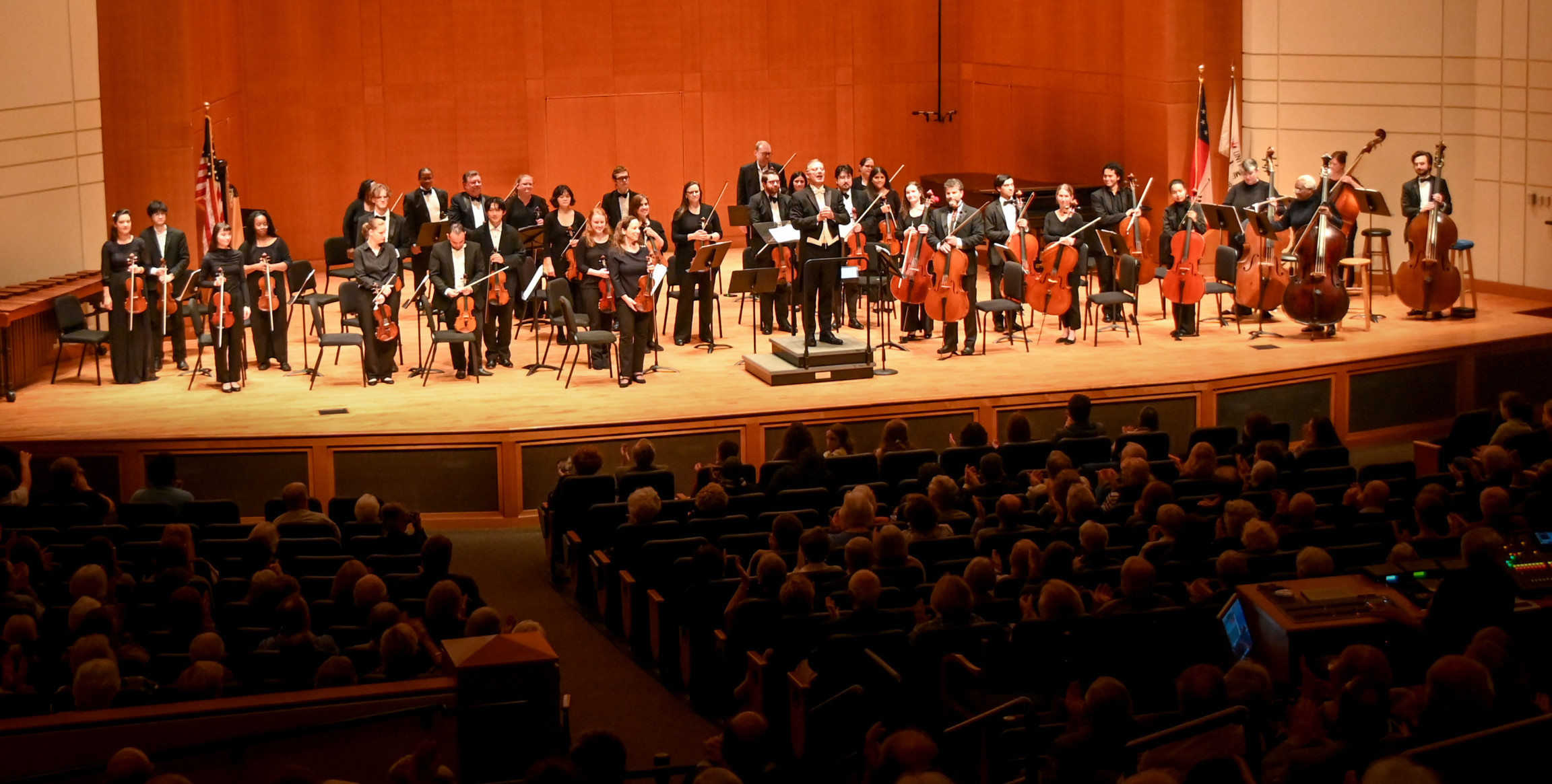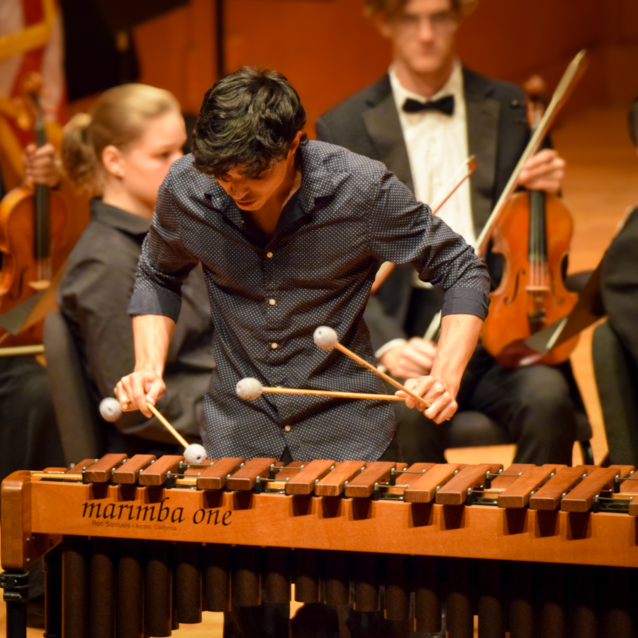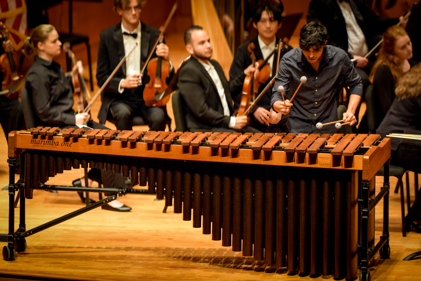 The evening concluded with Emmanuel Séjourné’s Concerto for Marimba and Strings, featuring Sebastian Ocando as soloist. Performing the Tempo souple and Rhythmique, énergique movements, Ocando brought both elegance and vitality to the stage. His playing was full of color and nuance. At the same time, he conveyed a confident command that held the audience’s attention throughout. As the 2025 winner of the Young Artists Competition, he demonstrated remarkable virtuosity. His commanding stage presence kept the audience fully engaged, drawing them into every phrase. The marimba’s warm resonance seemed to glow through the hall, beautifully balanced by the strings. Generously donated to LaGrange College by Austin and Dan Cook, this particular marimba added a special significance to the performance, but it was Sebastian’s artistry, energy, and expressive depth that made the evening truly unforgettable.