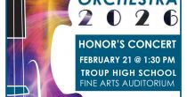 The 2026 Troup County Middle and High School Honor Orchestra event will take place this Saturday, February 21st. The showcase concert at the end of the event is free of charge and is open to the public. We hope to see you at the Troup County High School Fine Arts Auditorium to hear these wonderful young musicians. Concert is at 1:30 PM.